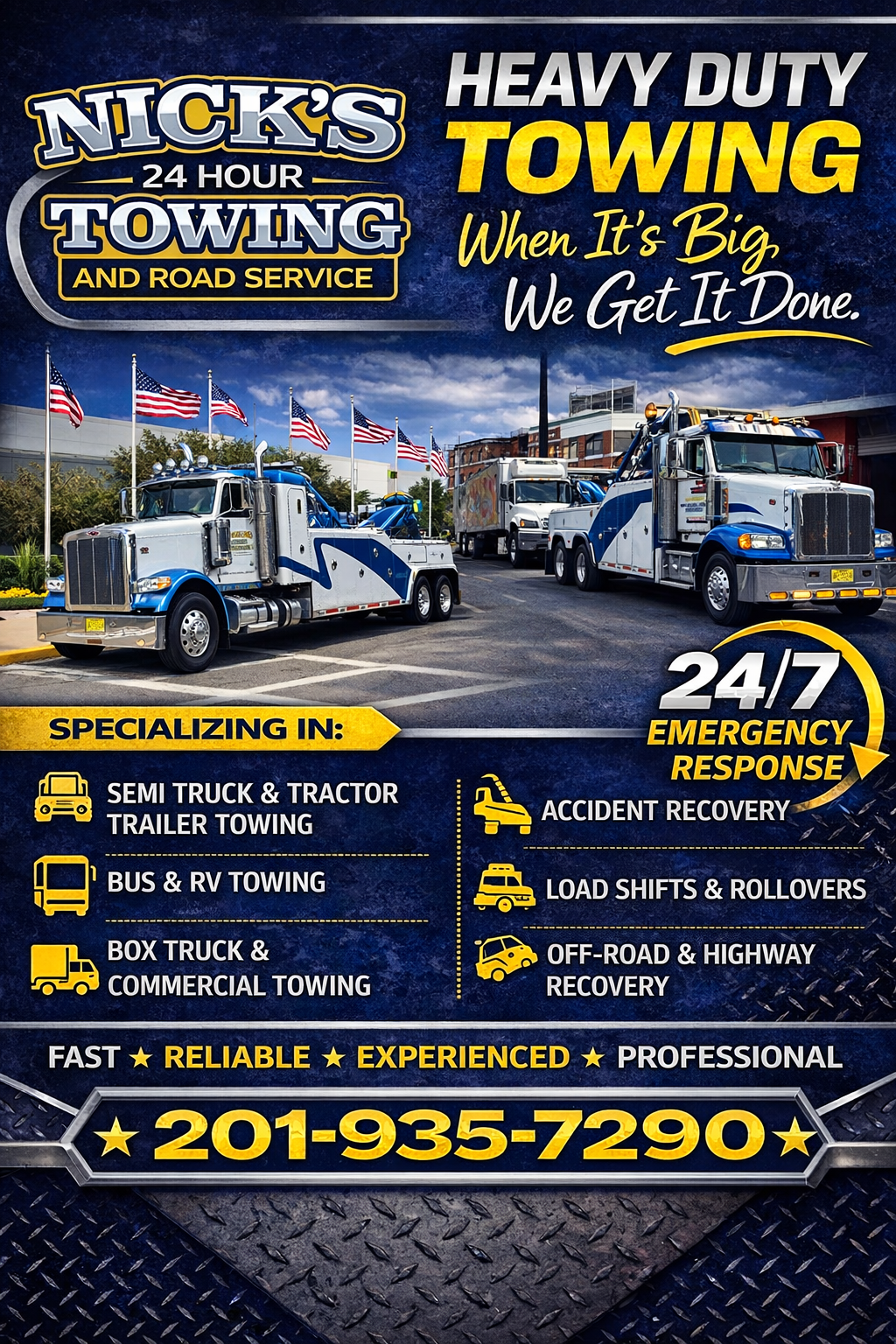 When the job is big, experience and the right equipment make all the difference. At Nick’s Towing Service, our team is equipped to handle a wide range of heavy-duty towing and recovery needs—from tractor trailers and buses to RVs and commercial vehicles. Every call requires careful planning, skilled operators, and the capability to get the job done safely and efficiently.