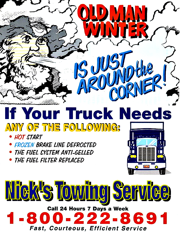 At Nick’s Towing Service, we understand that downtime costs money — especially during winter’s busiest season. That’s why our goal is simple: keep your trucks rolling safely and efficiently, no matter how cold it gets.